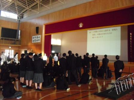 本校体育館において、熊本学園大学経済学部経済学科准教授のKirk Masden (カーク マスデン)先生を講師に迎え、講演いただきました。