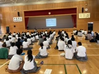 水俣環境アカデミアの古賀所長による水俣の紹介の後に、まず、本校生徒が作成した日本の高校生活紹介動画を上映しました。