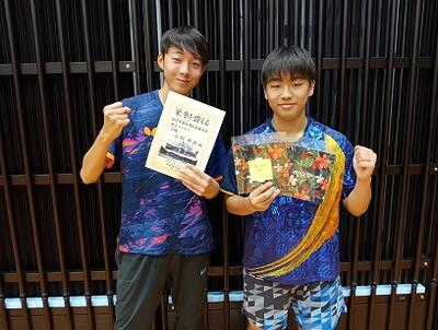 男子ダブルス 3位 :小形(2年:水俣一中出身)、平石(1年:水俣一中出身)