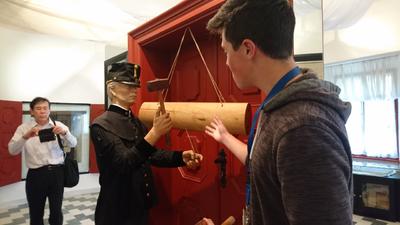 イドリア市の歴史を学び、レースや鉱山労働者の制服、水銀製錬器具やイドリアの地図など、様々な展示物を見学しました。