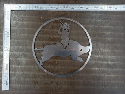 今日は他にも素晴らしい製品ができました!レーザー加工機を用いた製作を行っている班に注文をしていた製品で、直径200mmのイノシカハンターズのロゴです。ロゴデザインを手作業で丁寧に入力し、ステンレスの板をレーザーで切り出してもらいました。このロゴを私たちの活動場所に掲げ、より一層気合を入れて活動を行っていきます!