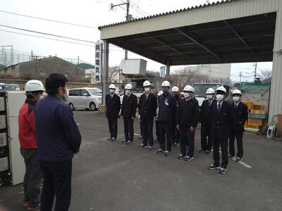 前回はなかった電気工事や配線、機器の取り付けまでみることができました。電気配線は、普段壁や天井裏にありなかなかみることができないので、電気、建築の生徒たちは、興味関心をもって見学していました。さらに、興南電気の社長さんから電気工事について、色々と教えていただけました。社長さんからは、「電気と建築が連携して工事を進めています。そのため、電気の生徒さんたちも建築の図面が読めるようになるといいです。2つの学科が一緒になっている君たちはすごく良いと思います。」と、言っていただきました。