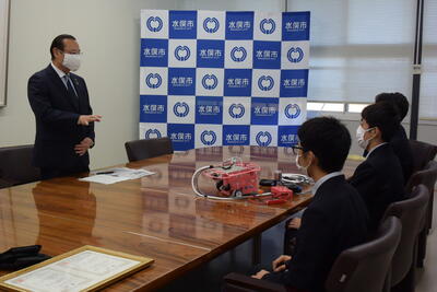8月に行われた水中ロボットコンベンションinJAMSTEC2021ジュニア部門で優勝とベストプレゼンテーション賞の受賞報告とふるさと納税基金による3Dプリンタをご提供いただいたことへのお礼を兼ねたものです。