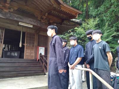 10月30日(土)に、湯の鶴温泉神社再建プロジェクトのボランティアに本校生徒9名が参加してきました。地元自治会や氏子会の皆さんと一緒に、神社の手入れをするため柿渋塗りを行ないました。いつも建築コースが行なっているWood connect projectですが、地域の皆さんとの繋がり、そして本校生同士の繋がりを考え、他学科にも募集をかけたところ、すぐに予定していた定員8名を超え、建築コース、電気コース、機械科の生徒9名の参加となりました。