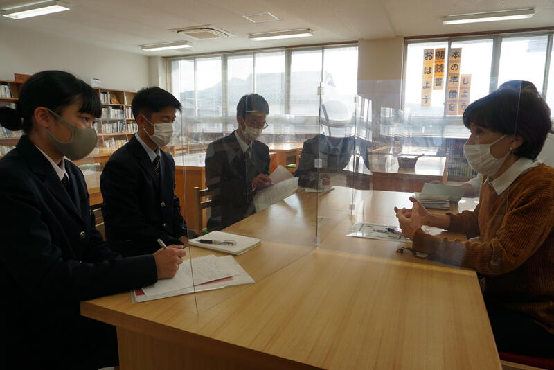 2学年の総合的な探究の時間の活動の一環として、映画「MINAMATA」のモデルにもなったアイリーン・スミスさんを招いて生徒が取材をしました。映画が上映されてからの反響や、中学校や高校での講演会での話、映画の脚本で特にアイリーンさんが監督にお願いしたことなど…、あっという間の1時間でした。アイリーンさんには水俣の高校生と話せてとても嬉しかったと言っていただきました。貴重なお話ありがとうございました。