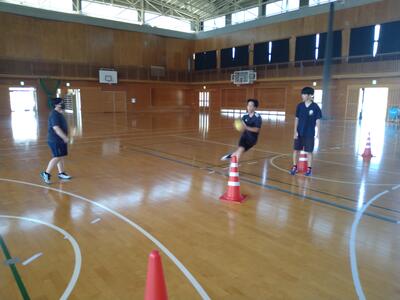 中学生体験入学後の部活動見学で、中学生の皆さんが多数来てくれました。先日は、本校の選手とみんなで軽くキャッチボールとジャンプシュートにチャレンジしてもらいました。楽しそうに参加してくれ、おかげで選手たちのやる気もアップしました。また是非見学に来てください。