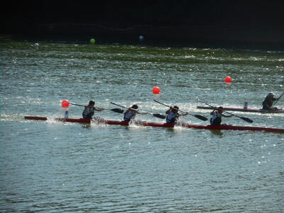 本校からは、女子カヤック、ペア(2人乗り)とフォア(4人乗り)の、500mと200mのレースに出場しました。