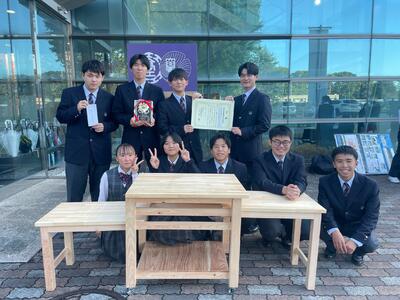 建築コース3年生のWood connect projectが、11月8日(水)に熊本大学で開催された熊本県工業高校生徒研究発表会に参加し、熊本県建設業協会長賞を受賞しました。