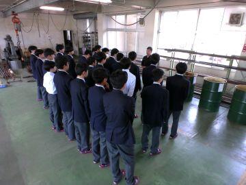 初めての授業では最初に実習服や安全靴等が配られ、サイズ等の確認をしました。皆で実習服を着たことで、実習に対する気持ちも高まったのではないかと思います。工場での整列の仕方も確認しました。