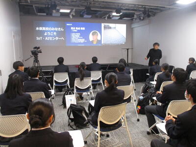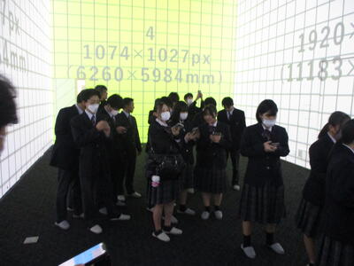 崇城大学では大学説明の後に、IoT・AIセンターを体験させていただきました。本施設自体が AIで管理されており、入場者を導く案内表示が自動で出た際には、生徒からも驚嘆の声があがりました。また仮想空間を擬似体験できたり、「つながり」についてご講話いただいたり、貴重な経験をさせていただきました。