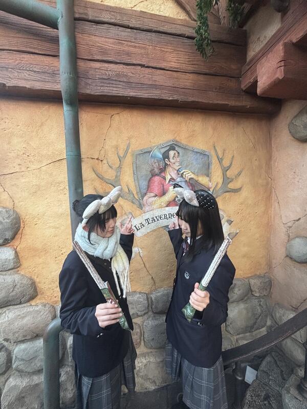 ランドに入るなり、被り物やカチューシャをいつの間に頭につけてお城の前や壁の前で写真を撮って楽しんでいました!