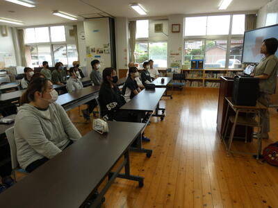 水俣地域の防災全般について、水俣市防災士部会の講師の先生からは、水俣市防災ハザードマップを用いて、身近な場所の写真も交えながら、わかりやすく説明をしていただきました。