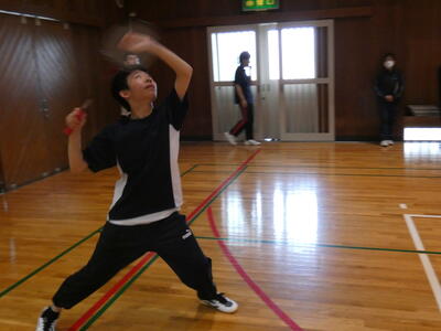 今年度から組んだ2・3年生タッグでの出場です。不戦勝等もあり、勝ち上がりました。普段の練習時も工夫しながら熱心に取り組んでいました。その甲斐あり、ネクストステージでは大接戦の展開でしたが、惜敗しました。しかし、試合後の弁では、両者とても楽しめたということでした。