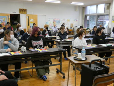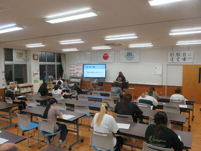 水俣地域の防災全般について、水俣市防災士部会の講師の先生からは、水俣市防災ハザードマップを用いて、身近な場所の写真も交えながら、わかりやすく説明をしていただきました。