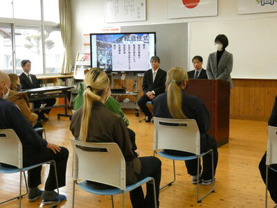 40年近く教員を続けてきて、このたび教師生活にピリオドを打たれる先生からは、今の生徒が最後の生徒となるわけですが、授業、学校行事、販売実習、試作実習等を楽しみながら頑張っている姿をほめていただき、成長した数年後がとても楽しみで、やるべきことをやっていけば夢は実現する。健康に留意して過ごしてほしい。水高生のプライドを持って夢を実現してほしいとの励ましのことばをいただきました。