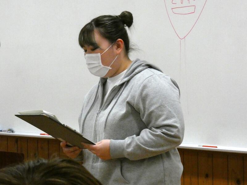 時間が来ましたので、今日はここまでです。生徒会副会長より、謝辞がありました。この1か月間は、生徒たちもいろいろと調べ、実際に様々ななタルトを食べてみたりしていたようです。今回の試作実習会では、ミナマータの皆様のおかげで、イメージが少しでも出てきたのでホッとしましたといった感想が述べられました。