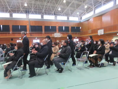 校長先生からの式辞では、挑戦を続けること、感謝の気持ちをもって謙虚な姿勢を忘れないこと等、励ましのお言葉をいただきました。来賓の皆様、祝詞・祝電をたまわった関係各位の皆様からも温かいはなむけのお言葉をいただきました。ありがとうございました。
