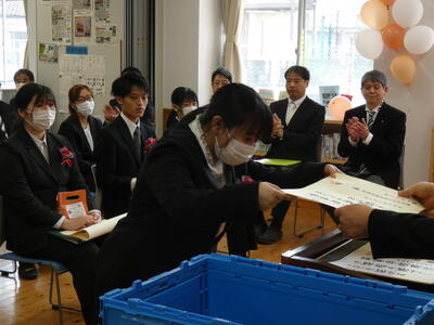 3月1日(金)は、令和5年度卒業証書授与式及び卒業生を祝う会が、また、それに先立ち2月28日(水)並びに29日(木)は、表彰式・卒業式予行・同窓会入会式・卒業生を祝う会準備等といった卒業式関連の各種行事が行われました。
