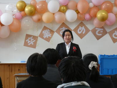 卒業生は、この定時制での歳月で、大きな成長を遂げました。そして、いよいよ社会のスタートラインにつきます。進学する人、新規で就職する人、現業を継続する人等、進む道は様々です。道につまづくこともあるでしょう。その時は自分たちで作った卒業アルバムを見返して、故郷を思い出してほしいです。定時制で頑張ってきたことに誇りをもって、大いに活躍して、幸せになってほしいと願います。