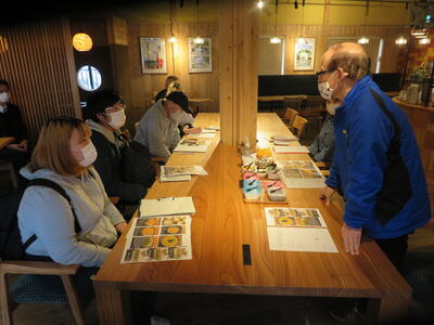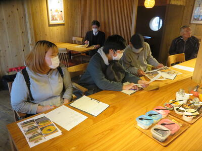 まずは、今回の講師の先生方の紹介です。道の駅みなまたの館長様及びシェフの方々です。その後、参加生徒の自己紹介です。今回は、2年生4名が参加させていただきました。