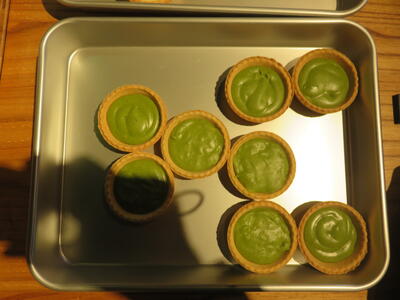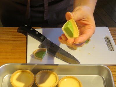 生徒の提案に合わせて、水俣茶タルトの素材をこしらえてくださっていました。