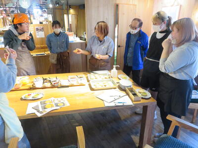 3月19日(火)は、道の駅みなまた・Shop&Cafeミナマータ様のご協力のもと、商業科商品開発「ミニタルト(創作スウィーツ)試作実習会」が、同所で実施されました。