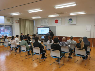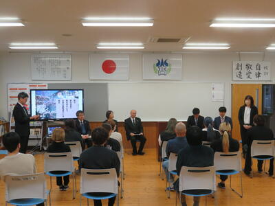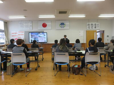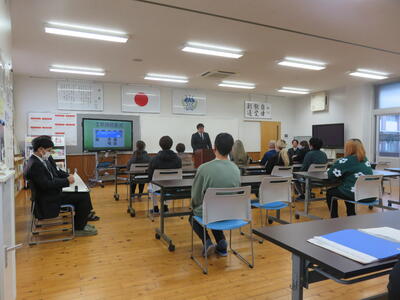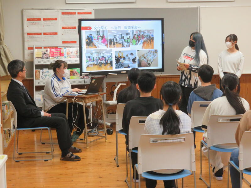 生徒総会や委員会活動、文化祭、バドミントン大会など、バラエティに富んだ数々の行事について昨年度の写真とともに概要を説明しました。