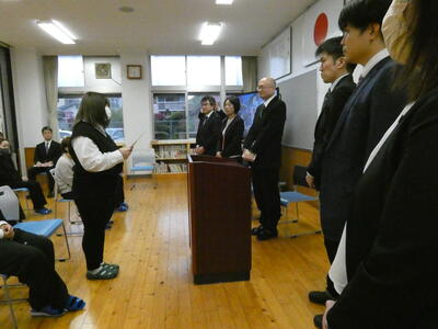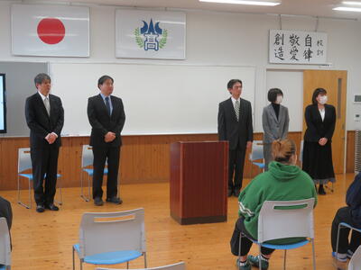 4月から新天地に転出される先生方からは、人との関わりを大事にしてほしい。人と関わることが苦手な人もいると思うけど、人と関わることを続けていけば、自分が困ったときに助けてくれる。生きにくい時代だからこそ、良い意味で人を巻き込みながら、今の高校生活をこれからの練習と思って過ごしてほしいという励ましのことばをいただきました。