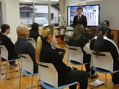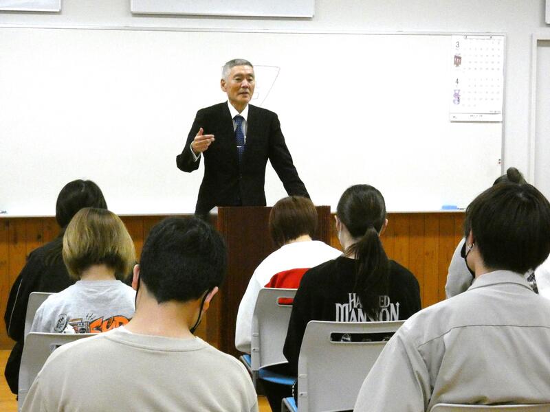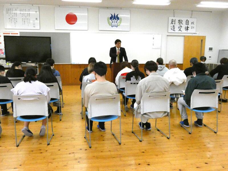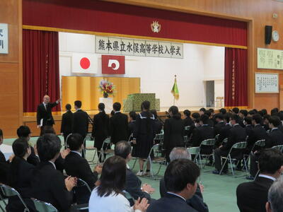皆さんは、背中に「願い」を背負っています。皆さんがどういう生活をしていきたいかという願い。次に、支えてくれている家族の皆さんからの願い。そして、お世話になっている地域の方々からの願い。最後に、再編統合前の旧水俣高校から引き継がれた願い。
