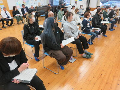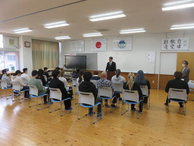 式後は、定時制の多目的室に移動して、新入生・保護者・職員の初顔合わせ会が行われました。