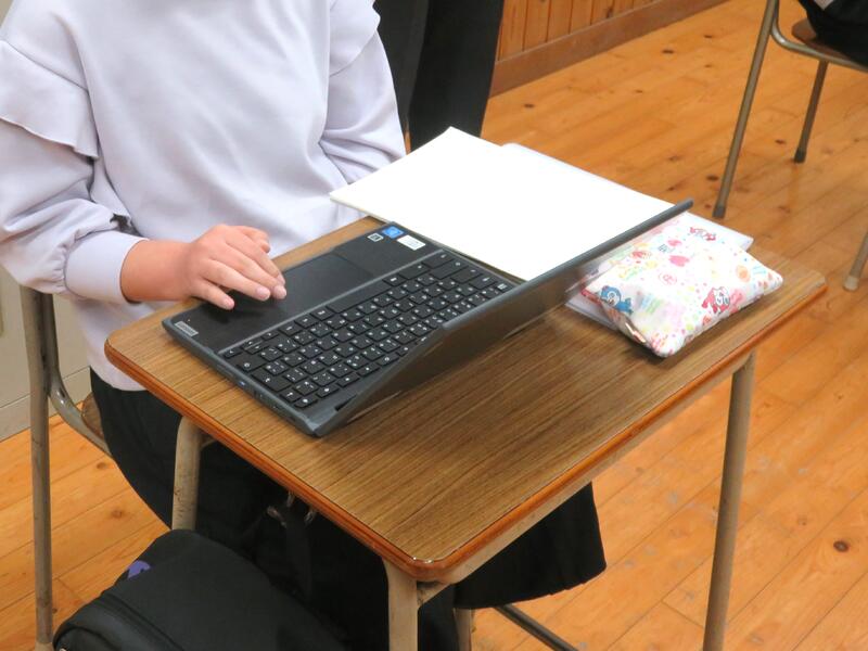 1年生は初めてのChromebookを手に取り、授業等での活用にあたって必要な準備を行いました。