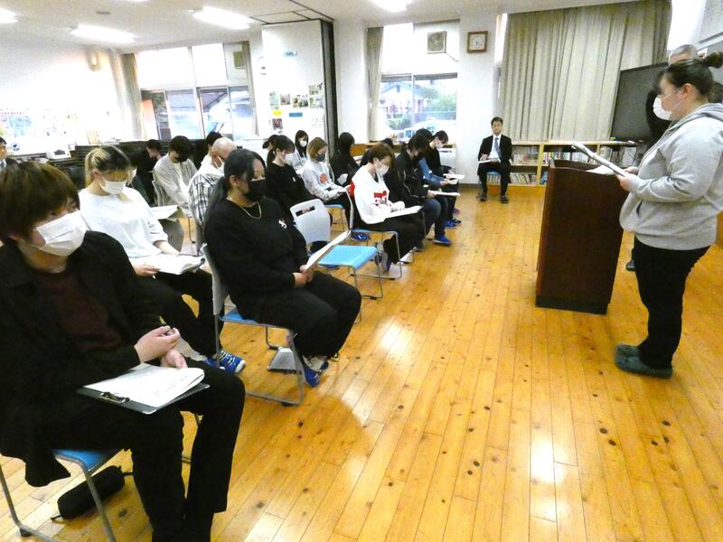 生徒指導部からは、学校生活を送る上でのルールや校則についての説明が行われました。みんなが心地よく安心して過ごせる学校にするため、上級生も改めて一つずつ丁寧に確認しました。