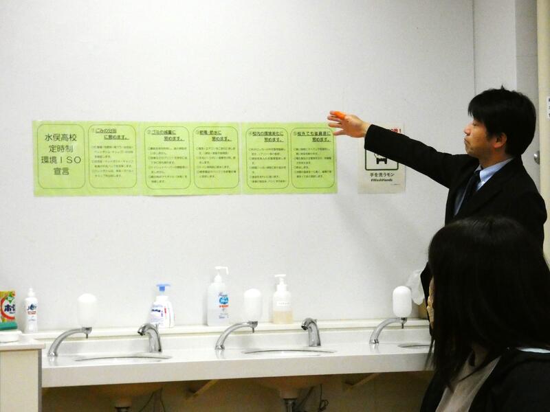 ISOの取組については、環境の係より、校内に設置されている5か所7種類のごみ箱と分別の仕方などについての説明がありました。「環境首都」とも呼ばれるこの地で学ぶ生徒として、主体的に環境保全に取り組む姿勢を周囲に示していってほしいと思います。