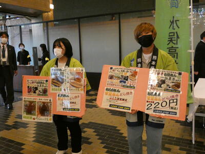 「先ほどのランチタイムショップでの完売、ありがとうございます。」「本校は商業科のため、様々な取り組みをしています。」などの、しっかりとした発表が印象的でした。