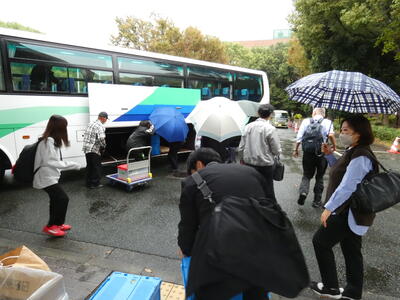 あいにくの雨の中でしたが、早朝から学校に集合し、バスに乗って会場へ向かいます。