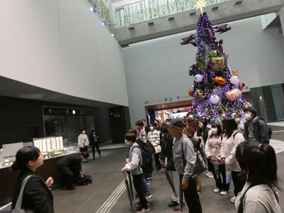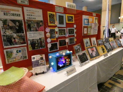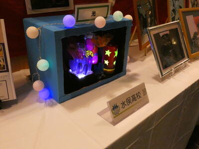 本校の創作班「光班」が誇る幻想的な作品です。その前には、水俣高校定時制のホームページにリンクするQRコードが入ったネームプレートを置きました。本校定時制のことを少しでも多くの人に知ってもらうための工夫です。