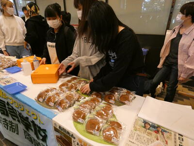 昼休みの60分間を、前後半の2班のチームに分けて行いましたが、150個仕入れた水定どら焼きは、ほぼ前半の30分間で売り切れ寸前まで迫り、後半開始後すぐに完売となりました。ありがとうございます。