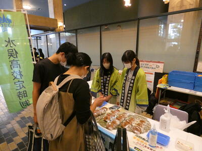 「先ほどのランチタイムショップでの完売、ありがとうございます。」「本校は商業科のため、様々な取り組みをしています。」などの、しっかりとした発表が印象的でした。