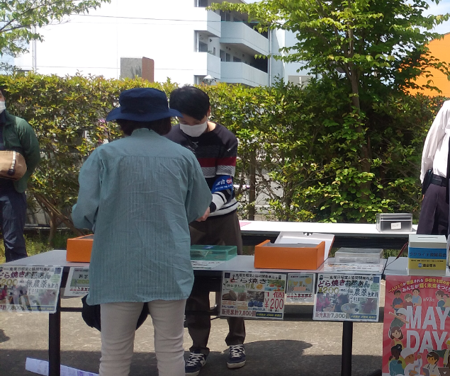 そして、新しい焼き印が付けられた水高どら焼きが、5月5日(木・祝)の第93回メーデー県南地区集会にて販売されました。