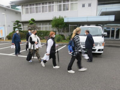 朝、学校に集合し、今日一日お世話になる運転手さんにご挨拶をして乗車します。