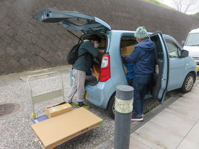 搬入場所の指示が出て、いよいよ車から荷物を協力して降ろします。