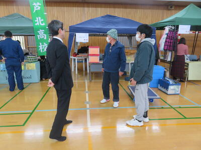 商品説明も丁寧です。校長先生も激励に来てくださいました。