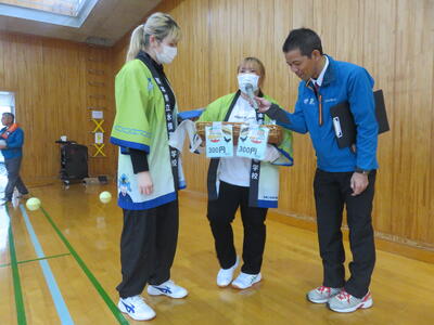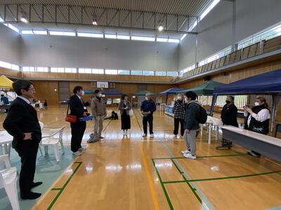教頭先生も到着されていました。雨の予報と強風により、今回は体育館での実施となりました。