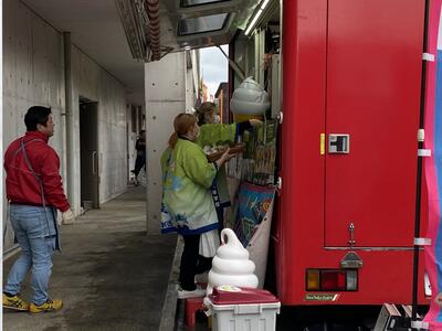 キッチンカーの方々にも「いかがですか?」積極的にシンPITAパンとどら焼きPRします。ご購入いただき、ありがとうございます。また、キッチンカーの方々から学んだことは、お客様からご注文をいただいて商品が出来上がるまでの間、絶えずお客様と会話をしてコミュニケーションをとっていらっしゃることでした。それが、次の機会のリピーターとなっていただくポイントなのだなと、勉強になりました。
