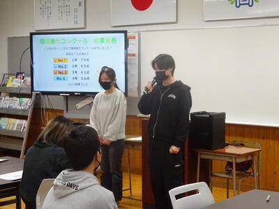 終了後は、環境美化委員会から、先々週の1週間、環境美化コンクールを実施した結果が発表されました。