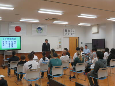 このエピソードから、目標達成のためには日々の努力が大事であるということ。2学期が始まるが、与えられた環境の中で日々の過程を大事にすること。卒業後、「帰ってこよう」と思える日々の取り組み方をしてほしいとの講話でした。
