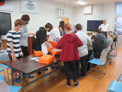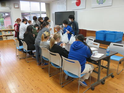 4月20日(木)の夕方からの時間帯において、本校多目的室で、いよいよ翌日に迫った道の駅みなまたリニューアルオープン1周年記念イベントの準備に着手しました。