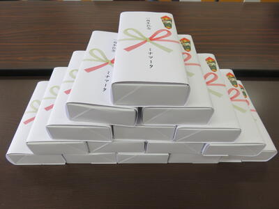 我々が任されている役割は、ONITSUKA日昭堂様と共同開発した「水定どら焼き」を先着30名様にプレゼントするため、商品への「シール貼り」及び「箱詰め」並びに「のし紙貼り」に関する作業です。