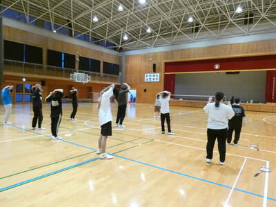 入念な準備運動後、競技の準備に入ります。昨年度まではリーグ戦でしたが、今回の一番の目玉は、トーナメント戦であるということと、敗者復活戦が行われるということです!いずれも生徒会の生徒たちによる発案です。