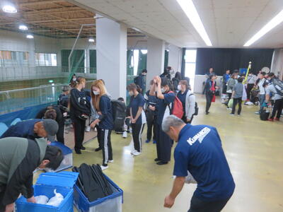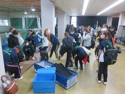 体育館2階の卓球場スペースをお借りして、本校の控えスペースを作ります。